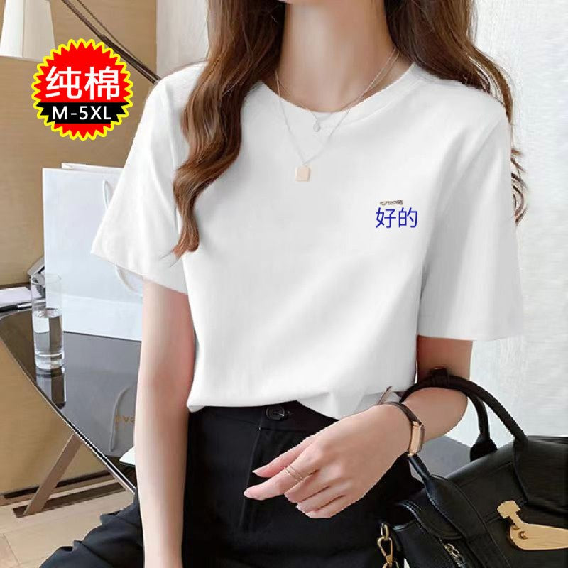 2024 Summer New Women's Loose Women's White Short-sleeved T-shirt Round Neck Top All-match Base Shirt Stall